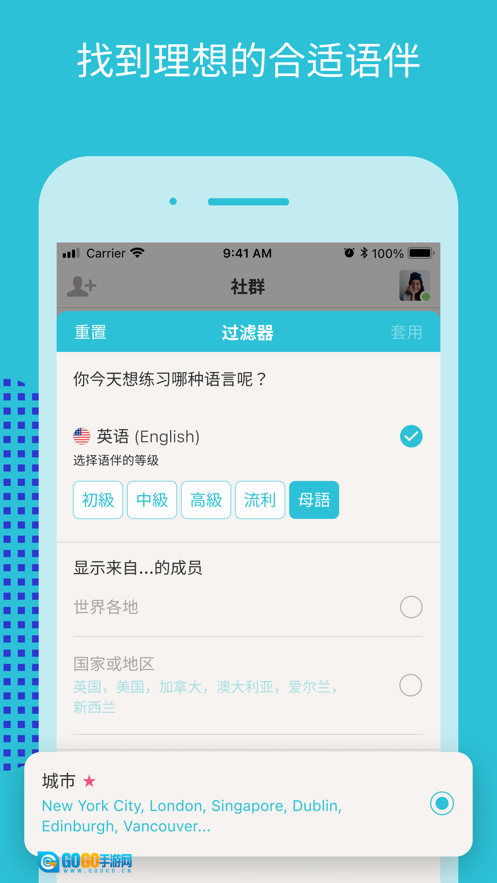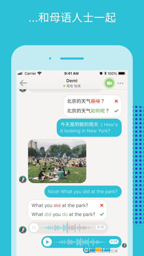 用户通过和全球各地的母语者交流,能够学习到地道的文法、发音和表达方式,把所学的语言运用到实际沟通里,从而有效增加词汇量、改善发音、攻克语法知识的难点。