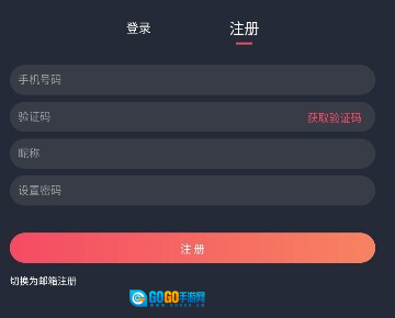 接下来我们找到登录按钮旁边的【注册】按钮,点击它就能切换到注册页面。