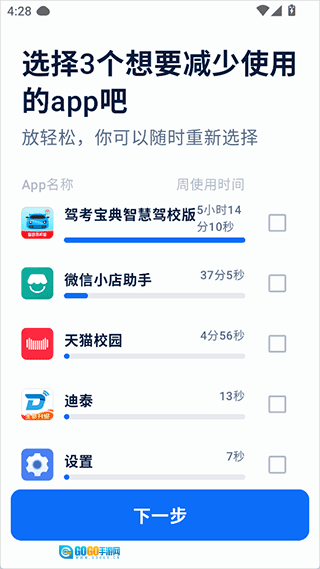 软件借助对手机使用时长的管理,帮助用户实现更健康、更合理的生活方式。