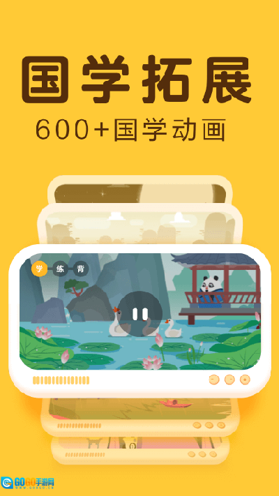拓展板块涵盖诗词诵读、国学经典、趣味动画、绘本、故事会和闯关挑战六个内容模块。