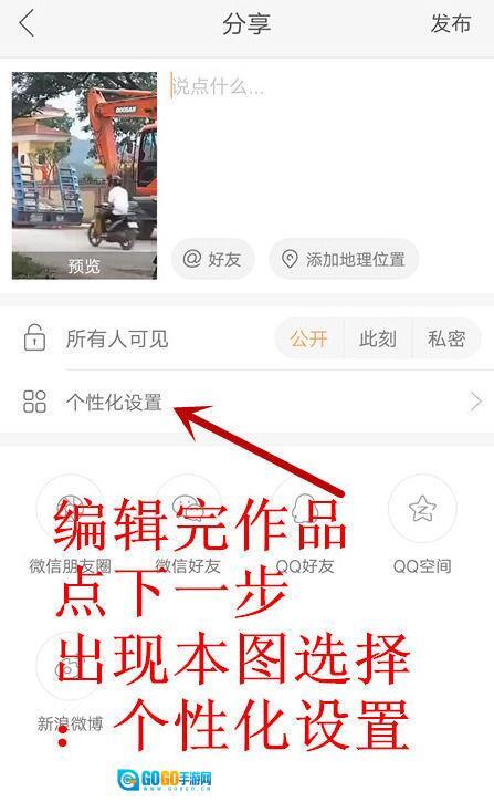 接下来大家需要在快手里拍摄短视频,进入视频的发布页面后使用“个性化设置”功能,这样就可以添加淘宝商品的链接了。