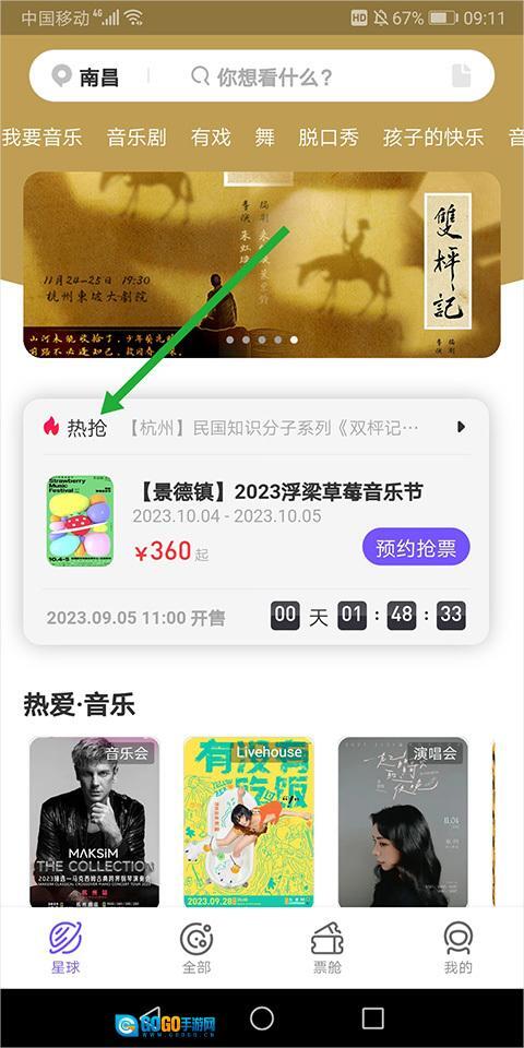 点击热抢信息后就可以进入星球热抢页面中进行抢票了