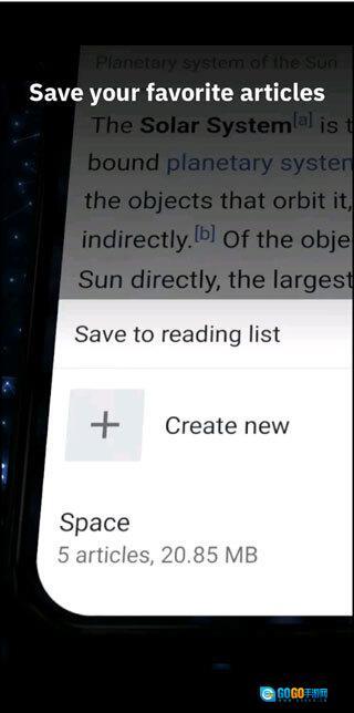 -已储存页面:您可以把页面保存下来用于离线阅读,即便在没有网络的情况下,也仍然能进行浏览。