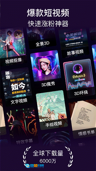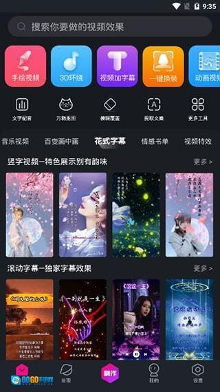 在界面里,大家能够随意挑选手绘视频、3D环绕、视频加字幕、一键换装以及一系列视频剪辑项目,为自己的视频增添丰富色彩。