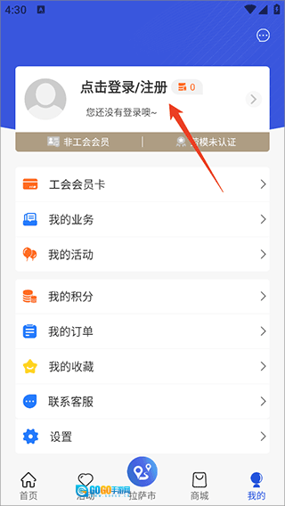 本站免费西藏职工,然后在手机上安装好后打开进入【我的】界面进行注册登录