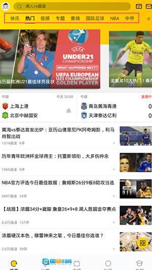 门的体育资讯板块涵盖中国男球、NBA、英超、CBA、西甲、意甲、德甲等内容。