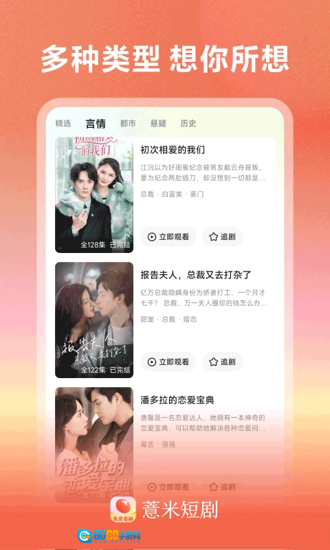 集合喜剧、爱情、悬疑、科幻、古装等众多题材短剧,满足不同用户多样化的观剧需求。