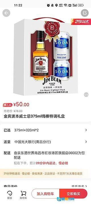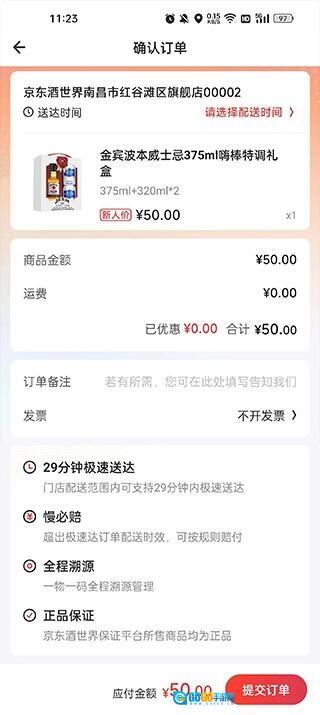 29在京东酒世界下单,附近门店会立刻安排配送,承诺29分钟内极速送达,若超出该时效(需在门店配货范围内),将按照规则进行赔付。