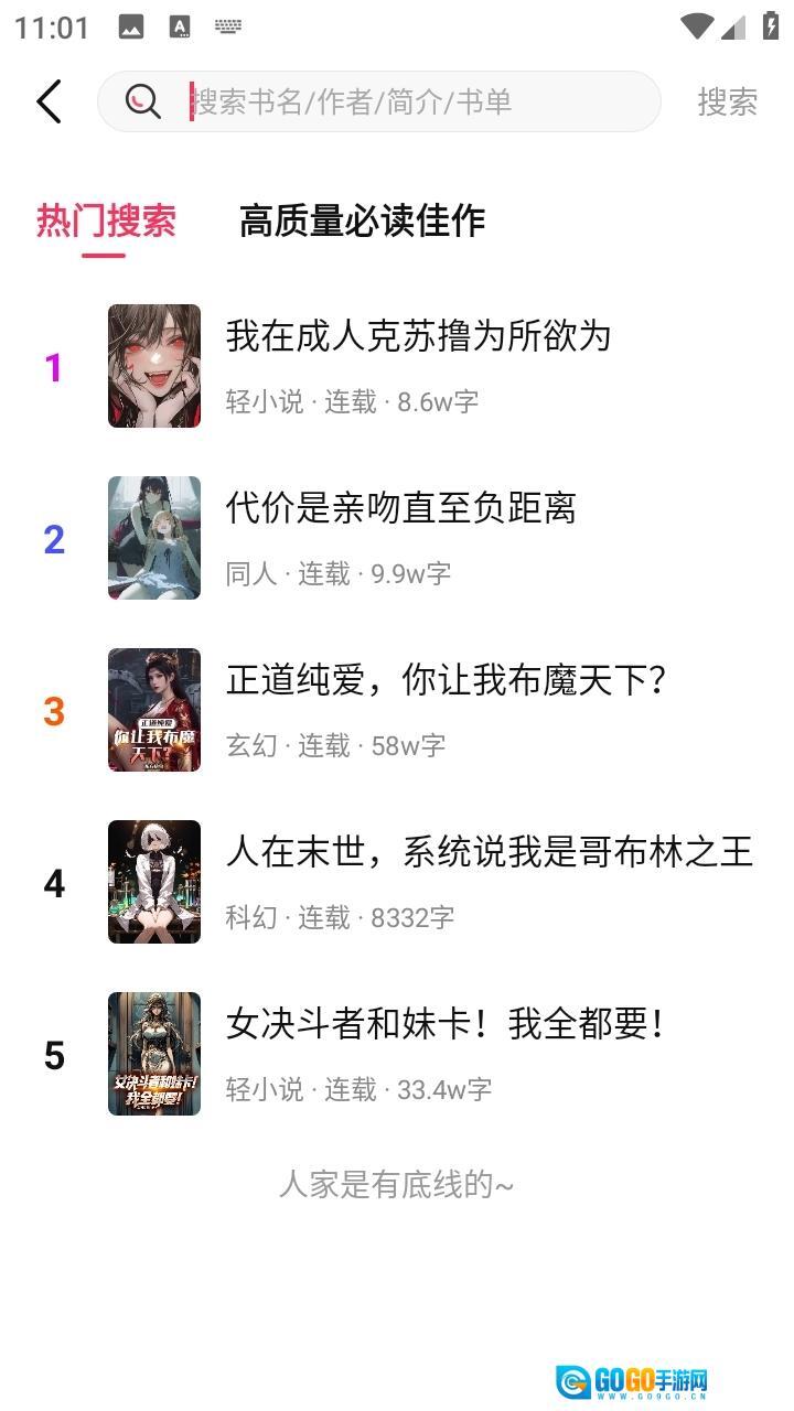 你可以通过搜索快速查找小说。
