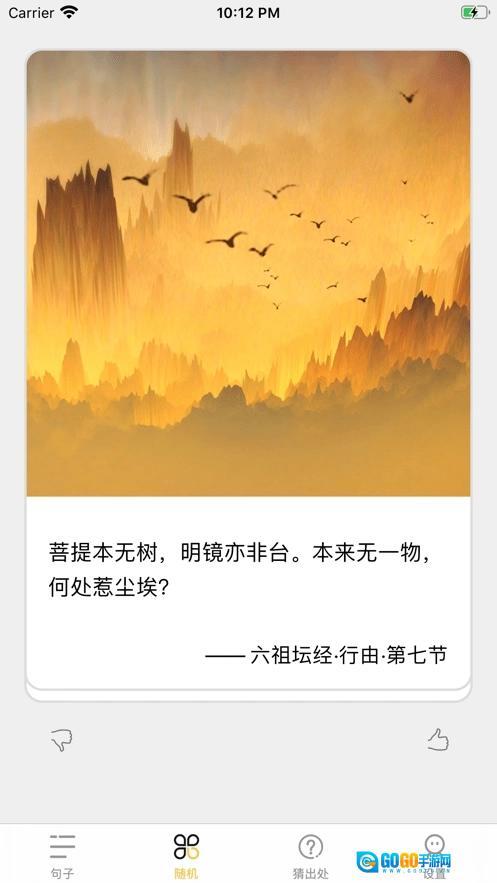 4、猜出处:每局设置10道题目,答对一道题目获得10分,答错则得0分。