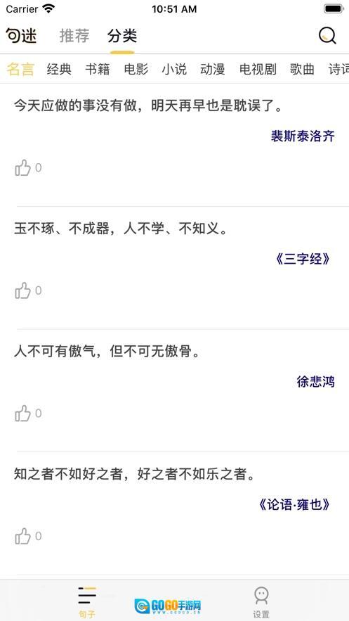 3、为你推荐海量的名言名句,涵盖名言、书籍、电影、小说、动漫、电视剧、歌曲、诗词等多种类型;
