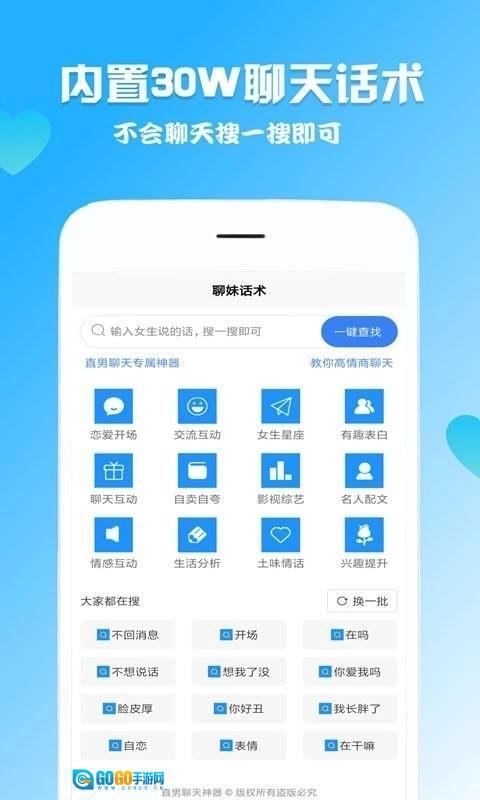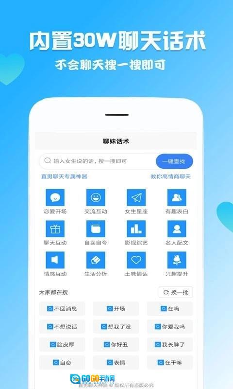 2、这款软件整合了丰富多样的聊天话术,覆盖各类聊天场景,能帮助你更从容地应对交流情境。