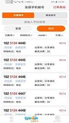 3.提供订单查询与一键下单功能,助力您迅速锁定心仪号码。
