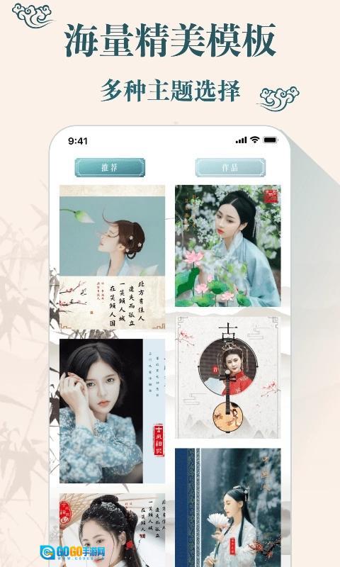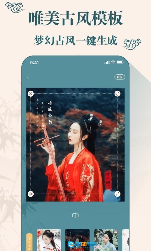 唯美模板画框:内含古风滤镜、贴纸、画框等精致素材,古韵盎然,韵味悠长,一键即可生成唯美古风照片。