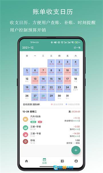 软件里包含不少功能,像日历、账单搜索、账单总览之类的。