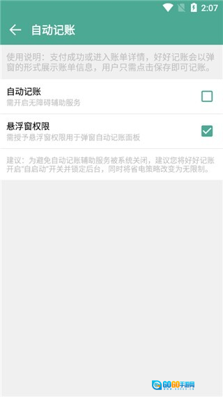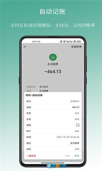 最为人性化的是,你可以设置自动记账功能,当之处成功或进入账单详情之外,软件会以弹窗的形式记录账号。