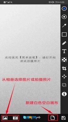 10、图片选择:用户可从相册选取图片,也能拍摄照片,还可以新建一块白色画板,在上面自行绘制图形。