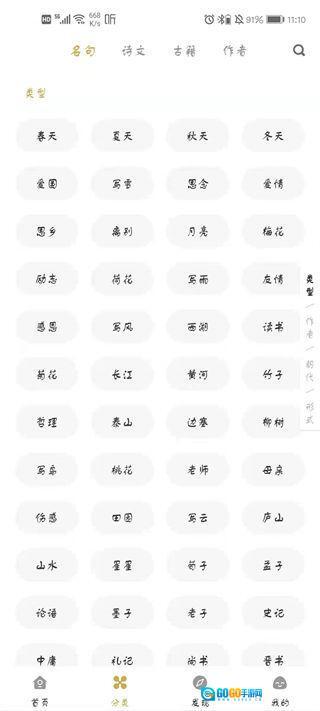 点击分类,用户可以根据需求点击古诗类型