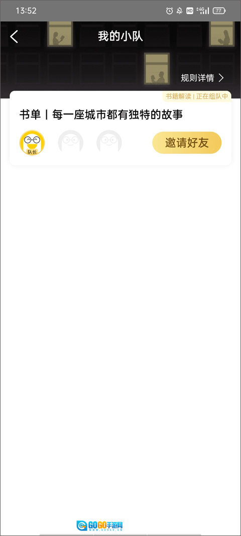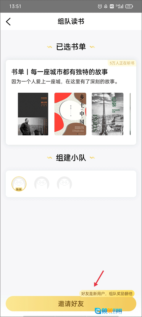 页面上会展示出你需要阅读的书单,每3个人组成一个小组,之后点击“开始组队”按钮即可。