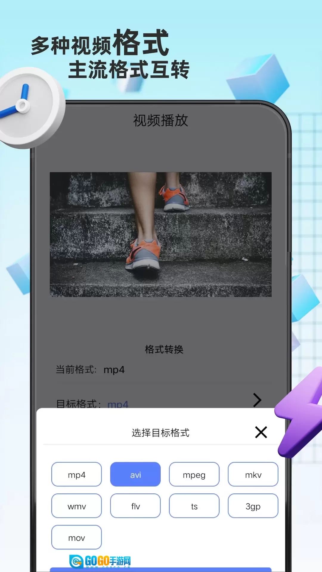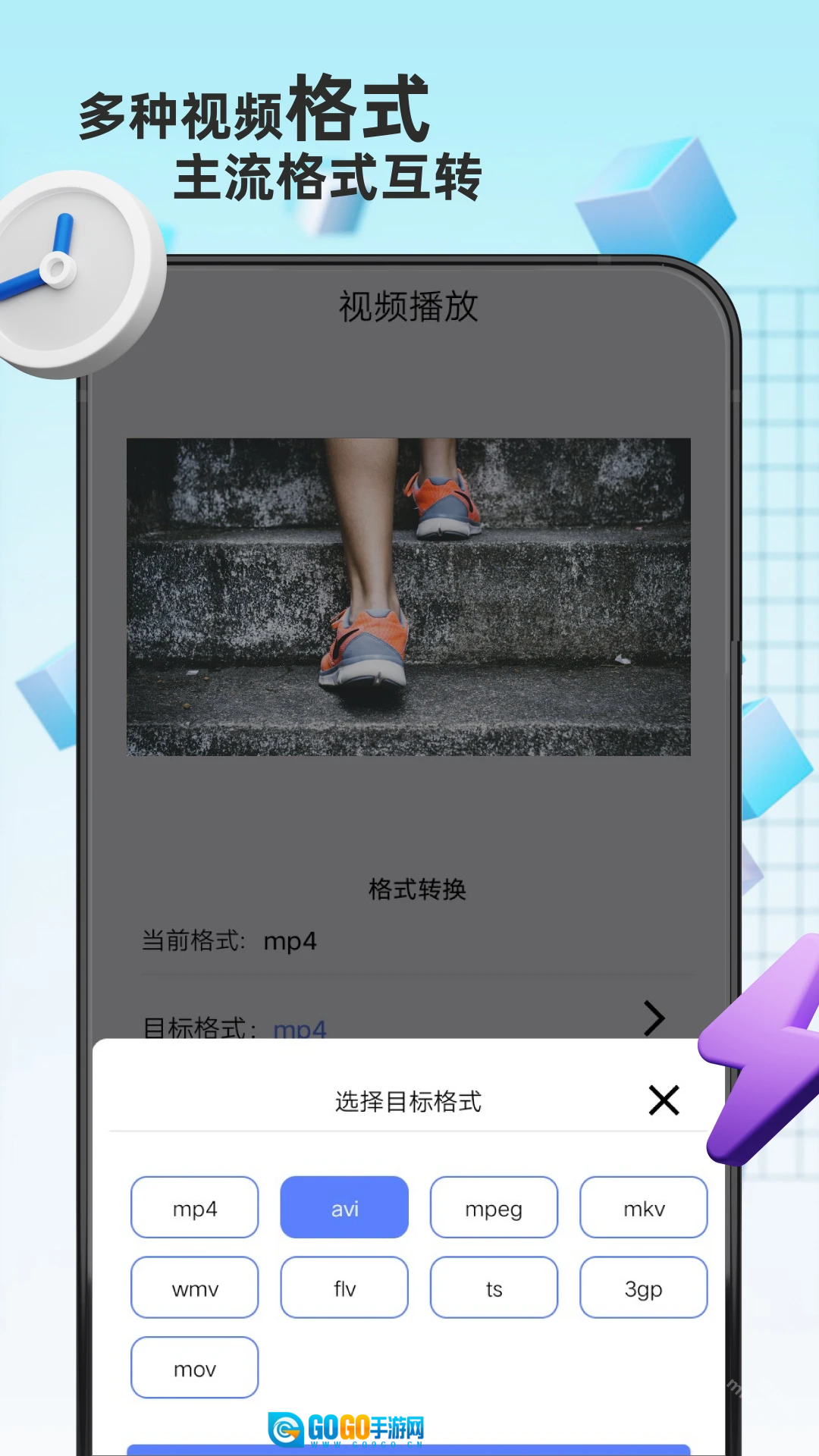 视频格式转换功能:可实现不同视频文件格式之间的转换,支持的格式包括MP4、avi、mpeg、mkv、wmv、flv、ts、3pg、mov等多种类型。