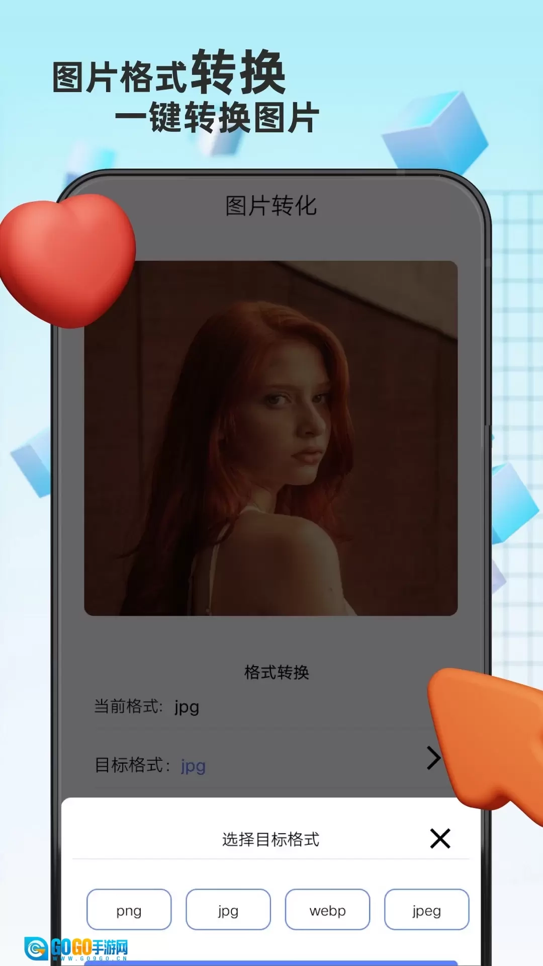 图片格式转换:可实现png、jpg、webp、jpeg等多种图片格式之间的相互转换。