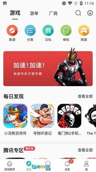 发现,在发现界面里,能看到不少新游、分类游戏,还有游戏专题。