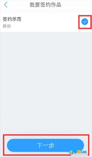 勾选准备申请签约的作品,然后点击【下一步】
