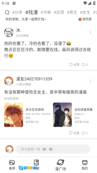 在这里可以分享好看的漫画或发帖寻找漫画。