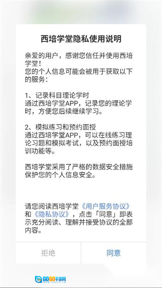 一键开启西培学堂,阅读隐私使用说明,点击同意。