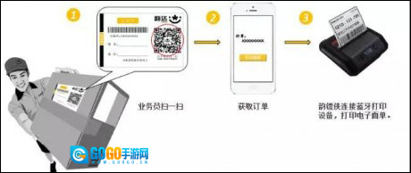 到客户那里收取包裹,使用软件完成揽件流程并打印相关单据。