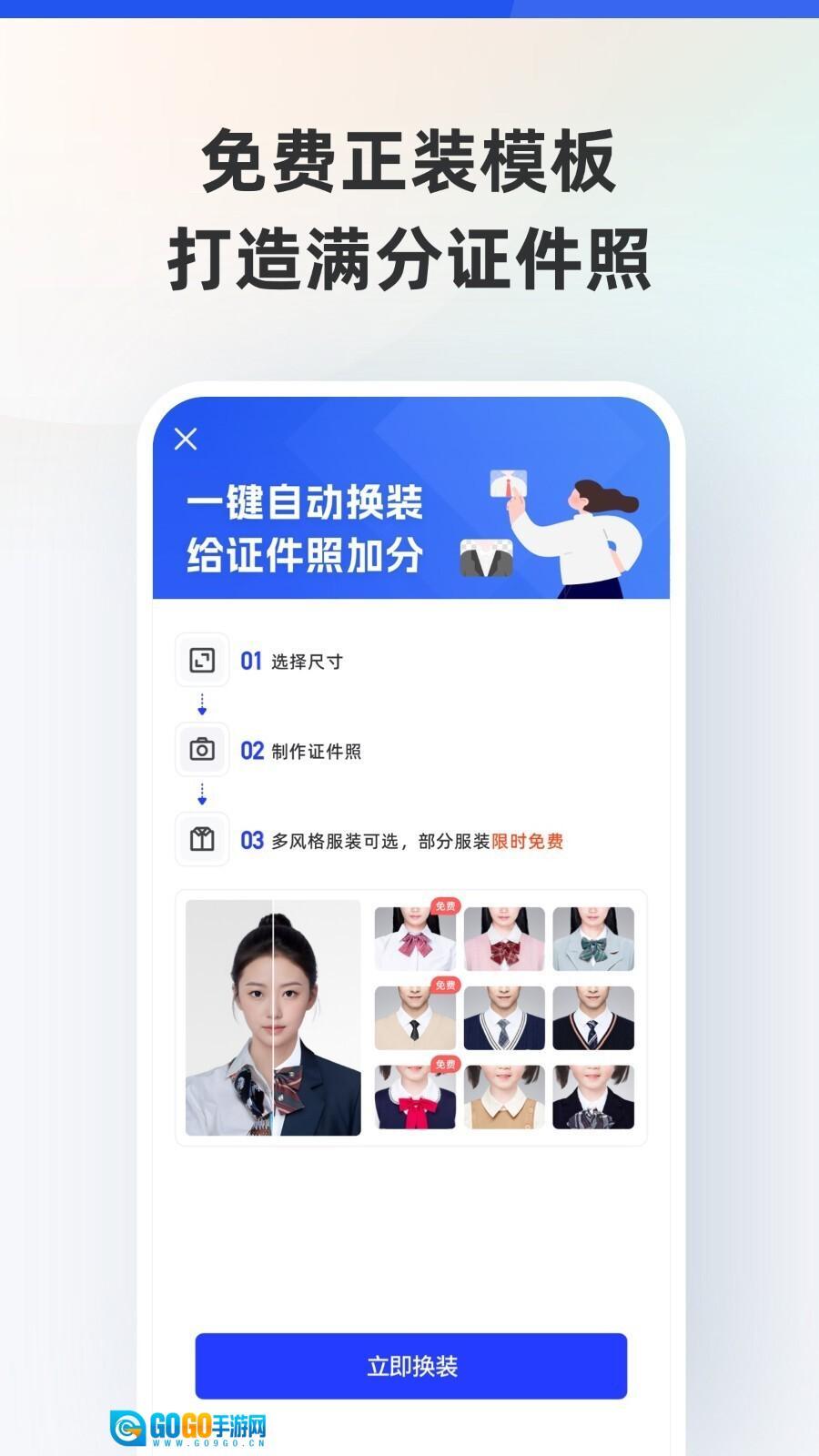 值得一提的是,智能证件照软件还具备算法自动换装的功能,用户能够挑选多款男女服装、可爱童装等模板来完成换装,使证件照既显得正式又不会过于呆板。