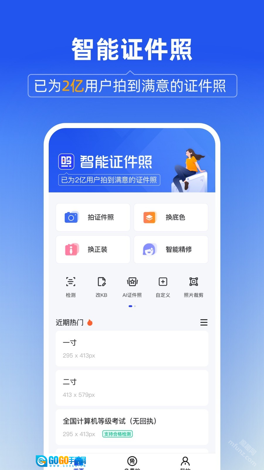 它兼容各类证件照尺寸标准,不管是用于求职应聘、考研备考、资格考证、报名登记或是出国办理等不同场景,都能找到符合需求的证件照规格。