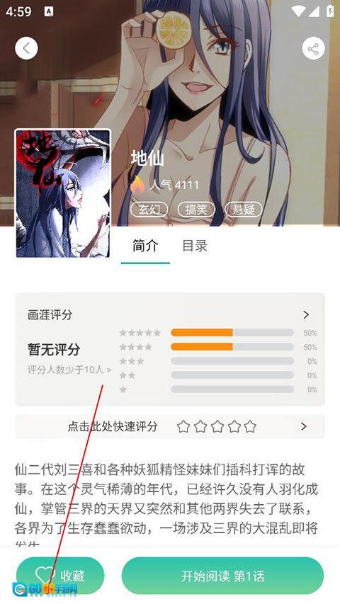 进入漫画详情页后,点击下方的“收藏”。