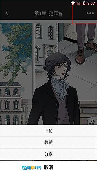 漫画页面的右上角设有三个小点,点击该按钮就能把自己喜爱的漫画分享给好友。