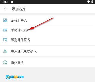 在弹出的新页面中,点击【手动输入名片】