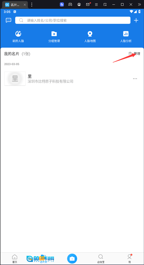 进入【名片夹】页面后,点击页面上的【管理】。
