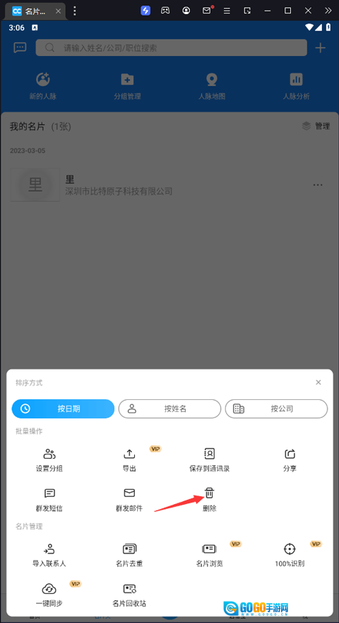 选择想要删除的名片,点击【删除】按钮即可。