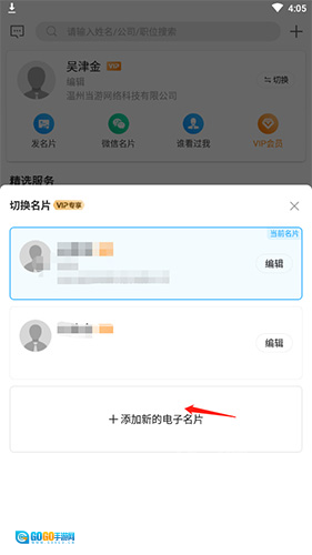 点击“添加新的电子名片”。