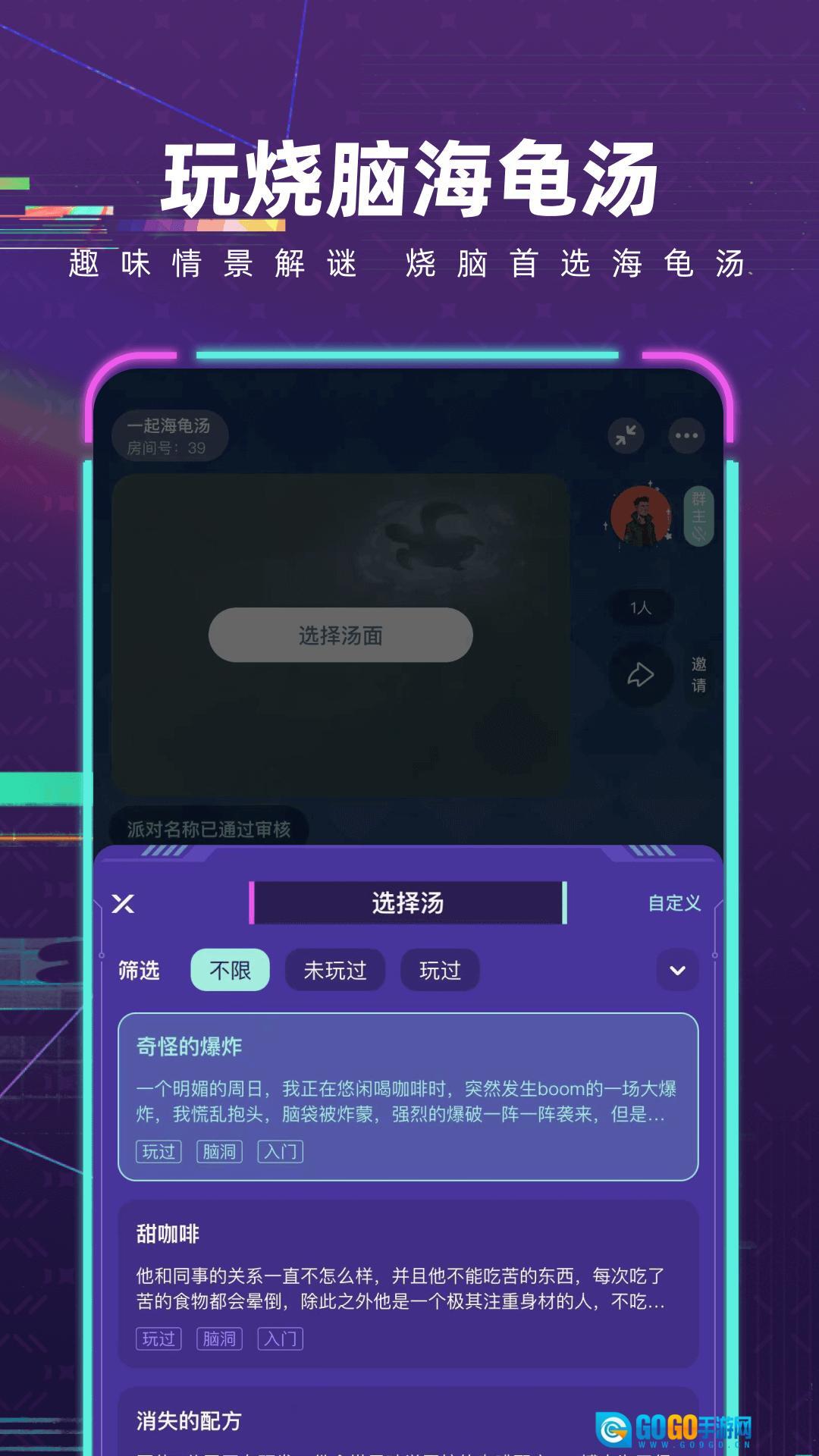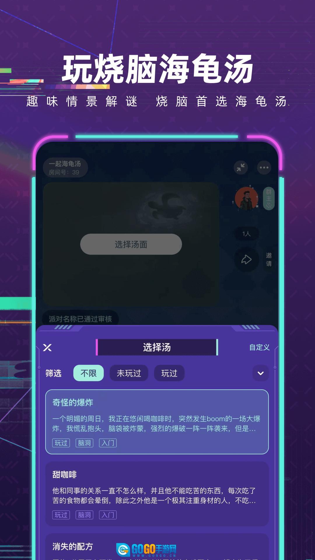 【欢笑无界,i人e人共赴乐】不管你是习惯线上冲浪的数字原住民,还是热衷线下体验的现实游历者,《梦核乐园》丰富多元的娱乐内容,都能让生活里的压力顷刻消散,让人际交往重拾纯粹的喜悦。随便加入哪个派对,都能自然融入其中,有趣的话题自动涌现,每个人都能在这里尽情享受欢笑的滋味!【赛博奇境,超越现实的欢愉】运用前沿的赛博风格界面,构建出满是未来感的虚拟空间,和现实世界形成强烈反差,带你沉浸到另一个维度的愉悦与放松之中。《梦核乐园》,是你躲开现实纷扰、拥抱纯粹快乐的秘密天地,让真实与梦境的界限变得模糊难辨!【潮流派对,尽在这座乐园】汇聚“狼人觉醒”“谁是卧底”“你说我猜”“海龟汤”等当下热门的派对游戏,《梦核乐园》引领着趣味潮流的方向。我们会不断探索新的玩法,你的创意说不定就是我们下一个热门项目!有什么想法,尽管来和我们交流,一起打造充满无限可能的欢乐之所!