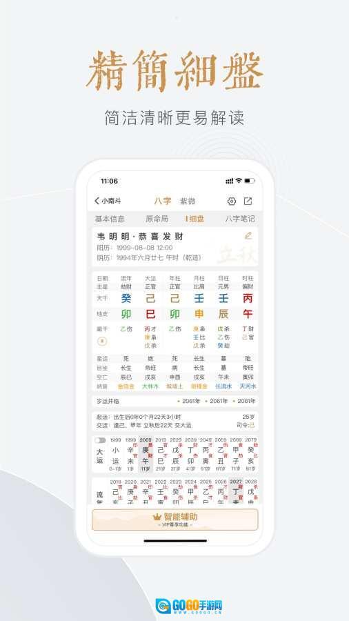 这款应用对复杂的传统排盘流程做了极大简化,即使用户不具备深厚的专业知识,也能迅速得到基础的解读内容。