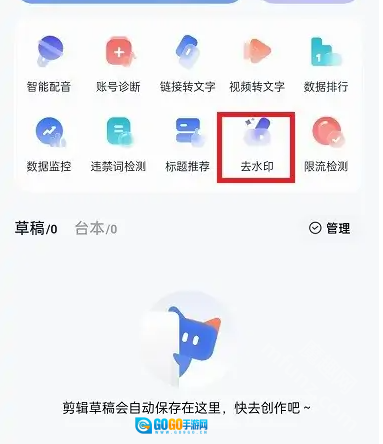 进入创作页面,点击“去水印”。