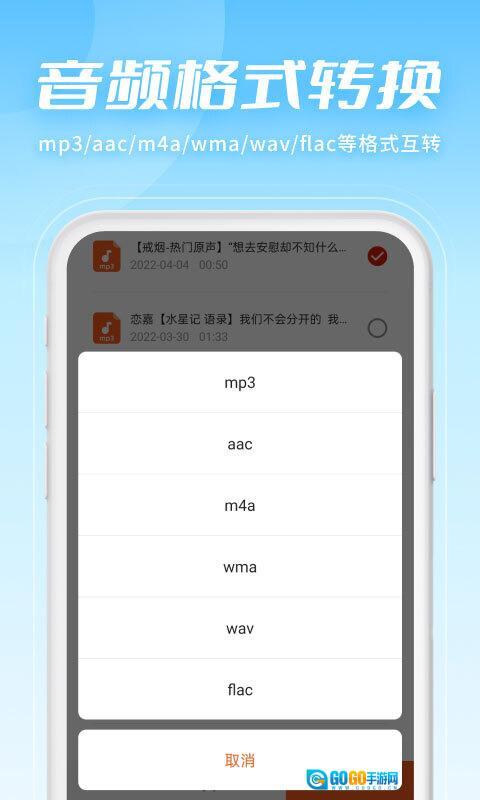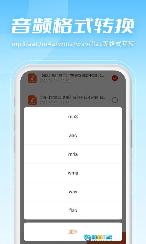 【格式转换】可实现多种音频格式的转换操作,像mp3、aac、m4a等格式均在支持范围内。