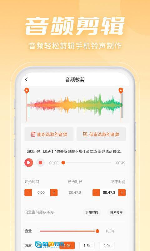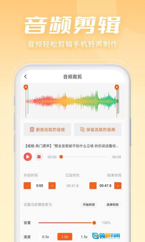 【音量调节】可调节音频文件分贝,使音乐更细腻。