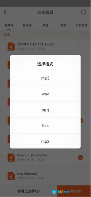 勾选需要转换格式的音频文件,接着点击“开始转换”按钮。