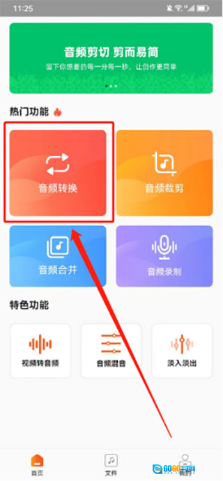 然后打开应用,在首页中点击“音频格式转换”功能。