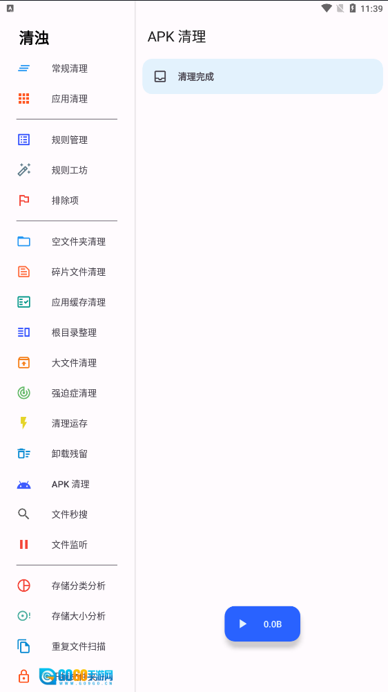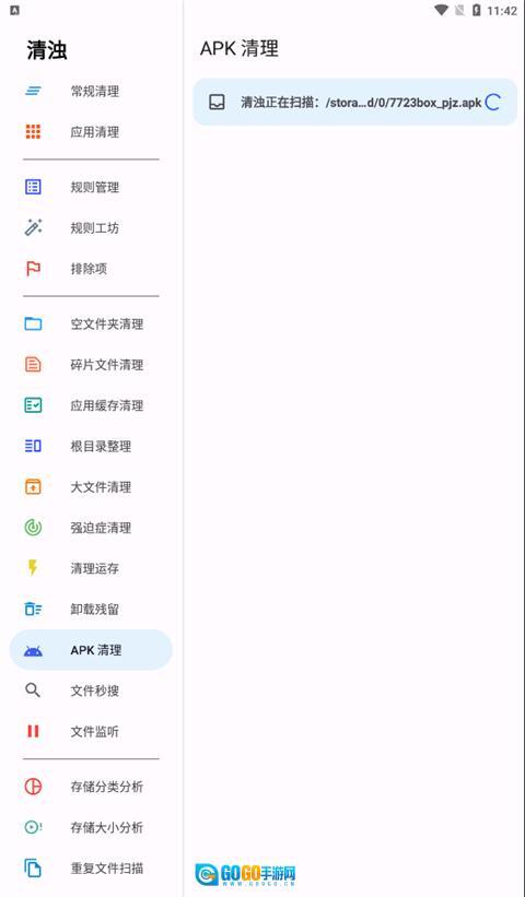 apk清理功能:主要用于清理本地apk安装包内的重复文件。它会对本地存储进行扫描,找出其中重复的文件后进行清理操作。