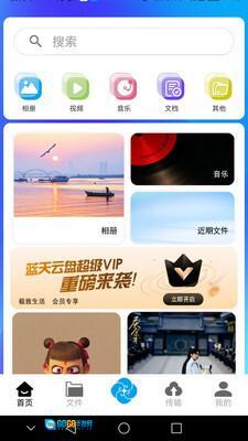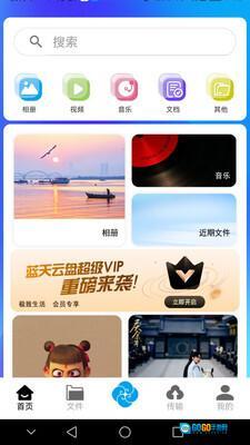 蓝天云盘App具备超大存储空间,可存储照片、文档、视频等各类文件格式,并且支持微信文件、短信、通话记录等数据的备份功能。