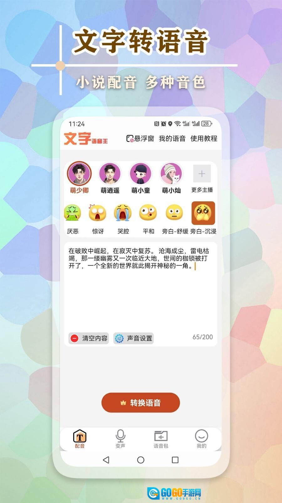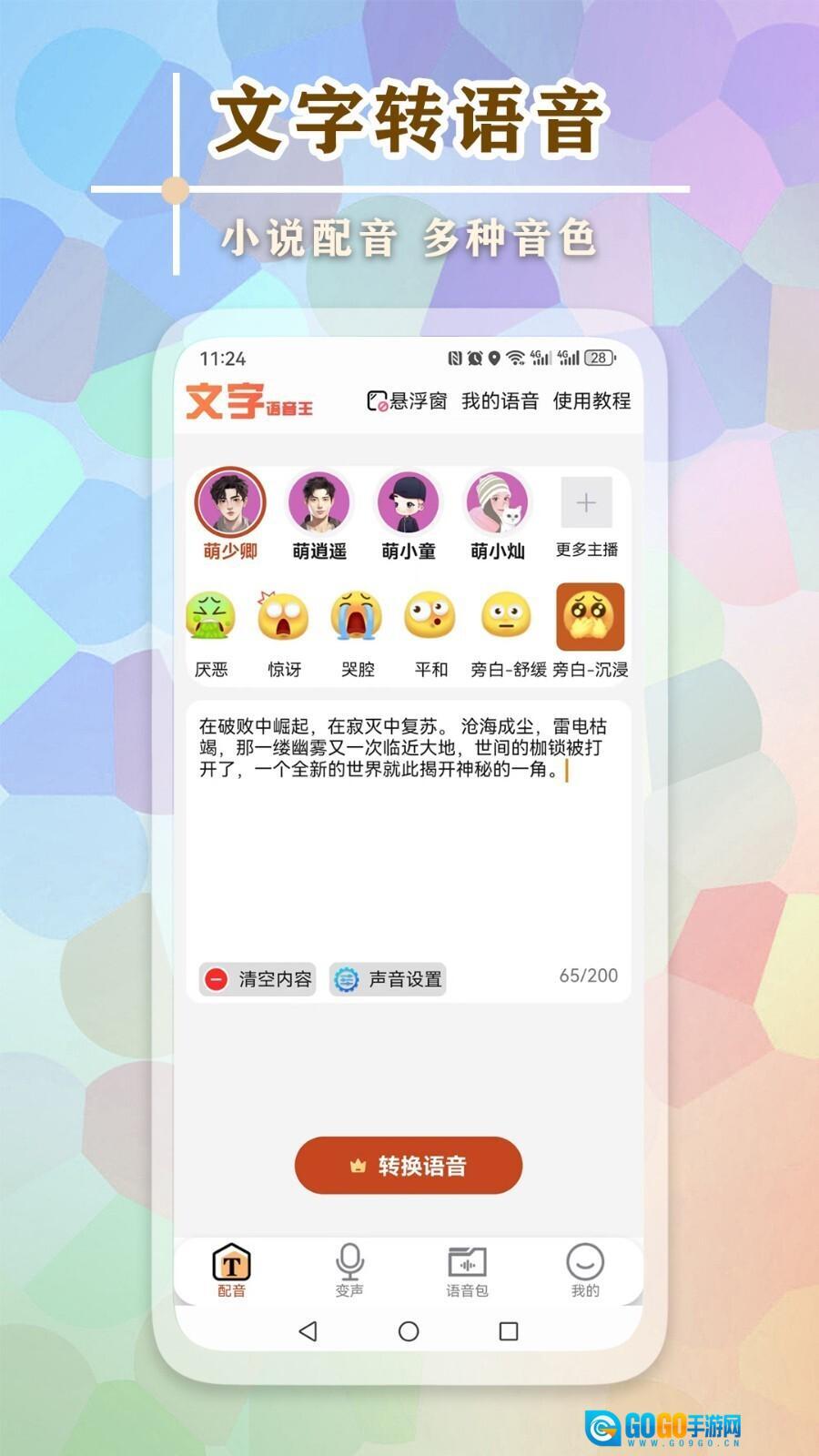 文字语音王是一款功能强大的文字转语音软件,借助先进的语音合成技术,能快速把输入的文本转化为自然流畅的语音播放出来。它在学习、工作、娱乐等多种场景下都适用,为用户提供便捷的语音服务,不仅支持中文、英文等多种语言,还配备了丰富的语音包可供挑选。