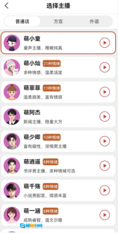 有多种音色供你选择,任选喜欢的。