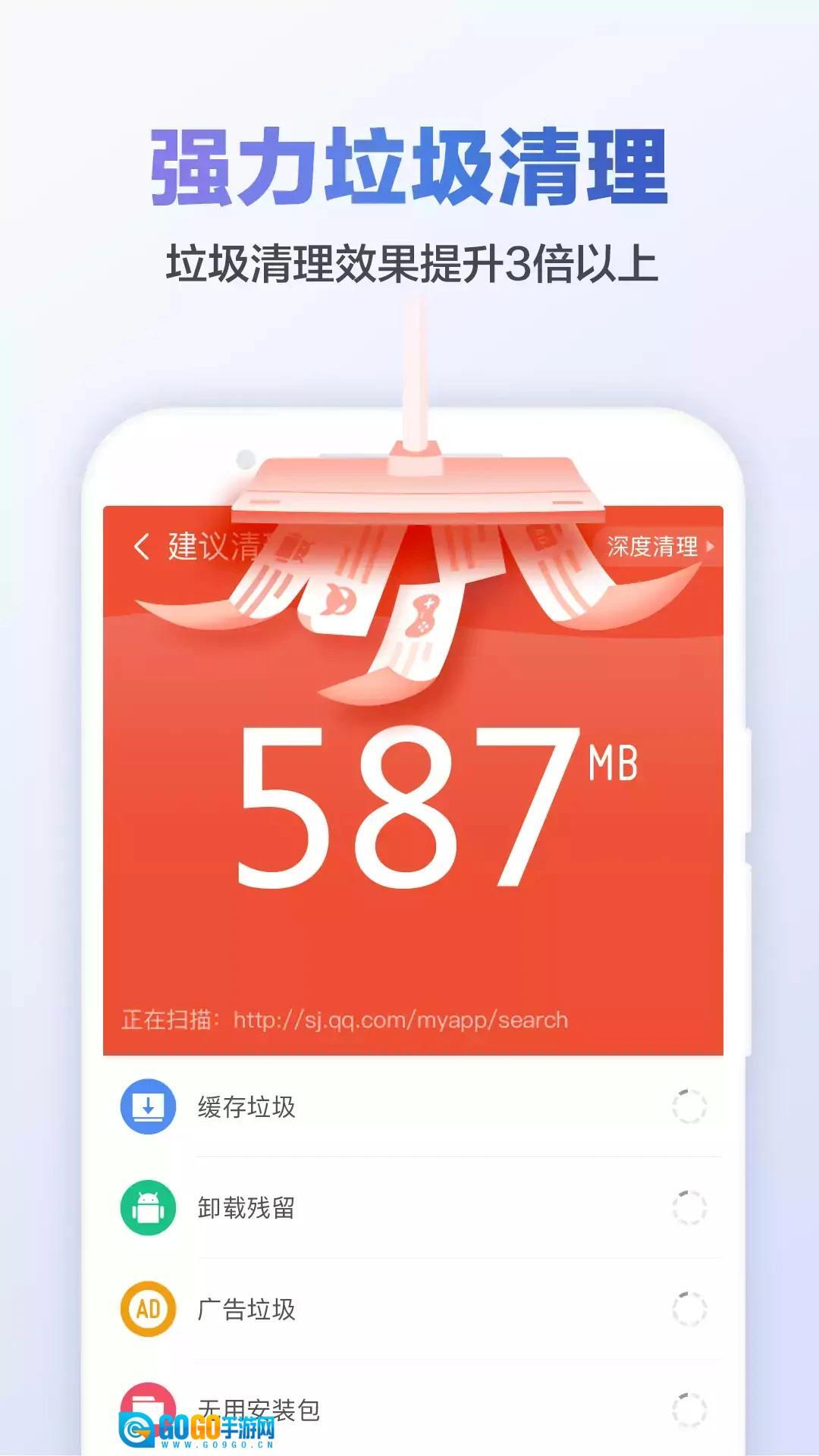 深度系统优化:除了清理日常垃圾,还能对系统缓存、日志等深层垃圾进行彻底清理,另外开启省电模式关闭耗电应用,多维度优化手机状态。